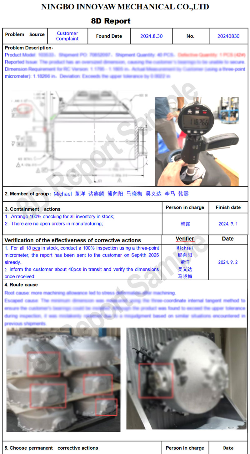 As a company that manufactures metal components for global clients, we employ the 8D report as a core quality management tool. Upon receiving customer feedback or identifying internal anomalies, we immediately initiate the 8D process: