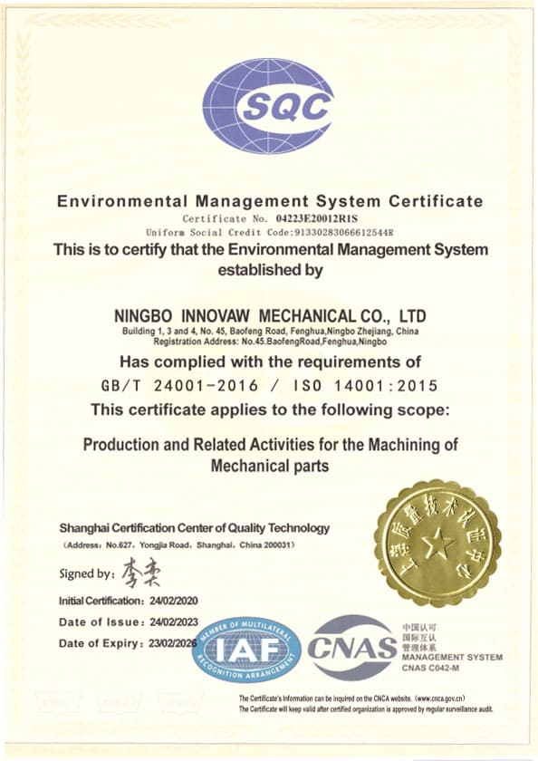Innovaw is committed to becoming a highly competitive and reputable enterprise, guided by sustainable development principles. We follow and implement the IATF 16949 quality management system standard to provide customers with high-quality products. Furthermore, our implementation of efficient Environmental (ISO 14001) and Occupational Health & Safety (ISO 45001) Management Systems provides robust support for our overall corporate strategy. For future, we are planning to apply more professional certifications. (e.g., SA8000, ISO/IEC 27001) to further validate our commitment to sustainable development, social responsibility, and continuous improvement.
