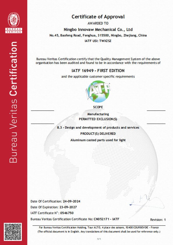 Innovaw is a professional manufacturer of aluminum castings and machined parts, lt has been serving global customers for more than 20 years and has won good reputation among customers.
