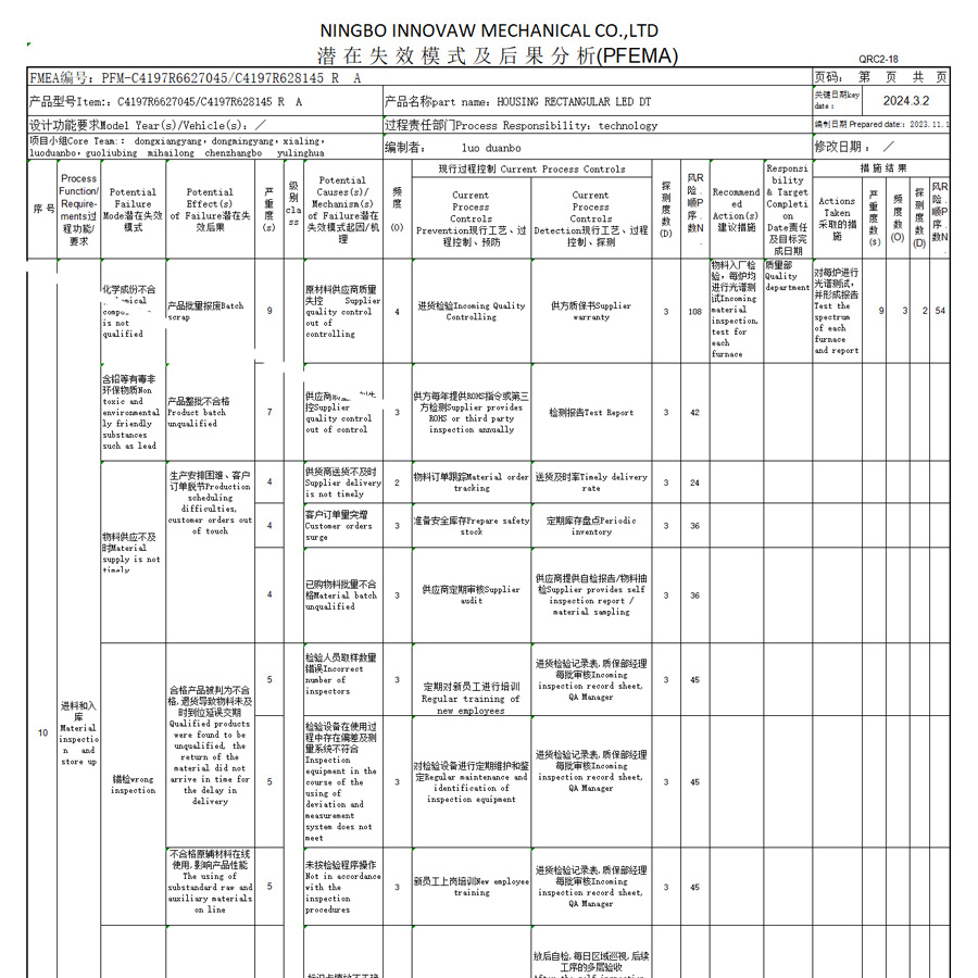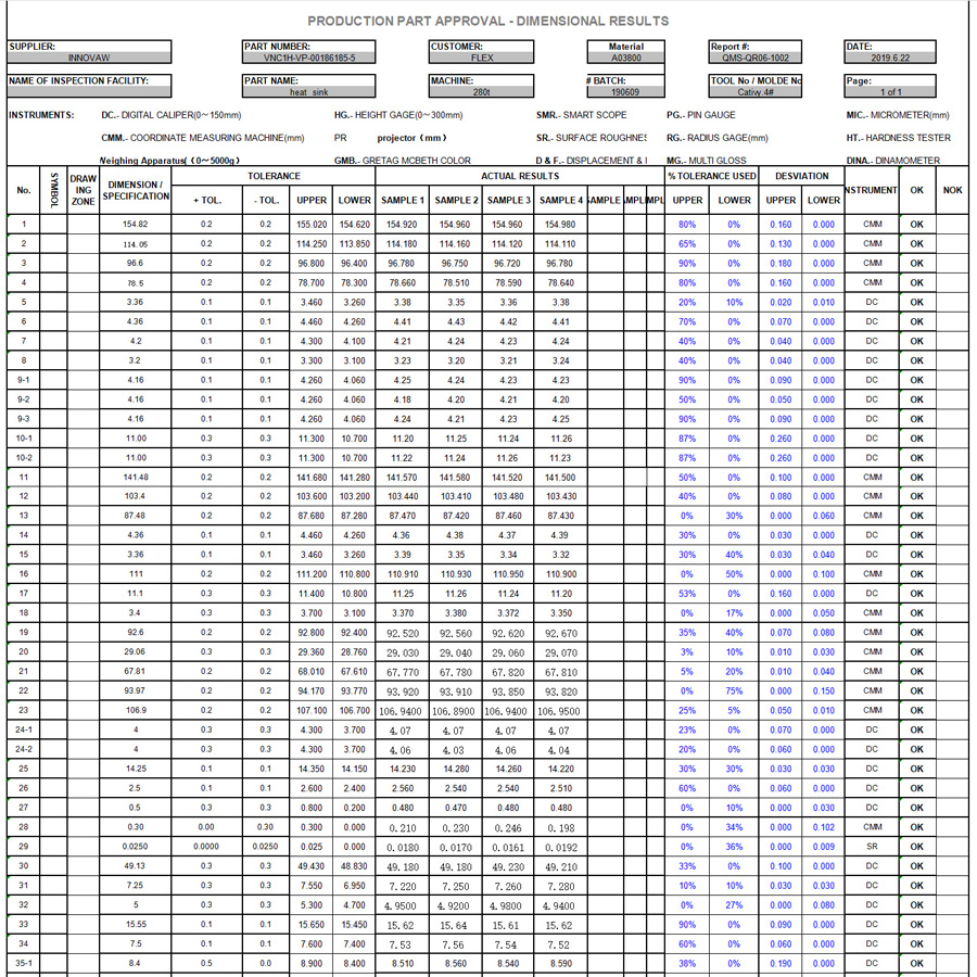 Innovaw is committed to providing high-quality metal component manufacturing services to global customers. Prior to mass production of any product, we provide complete PPAP documentation and secure formal customer approval. Our specific practices include: