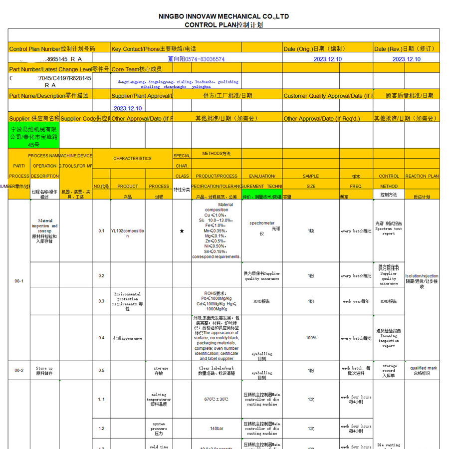 We regularly update control plans and FMEA content based on customer feedback and internal audit results, continuously optimizing process capability (Cpk, Ppk metrics) to ensure stability and consistency during mass production. Simultaneously, we maintain transparent communication with customers through PPAP documentation to strengthen trust and collaboration.