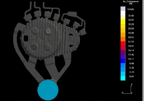 Considering the application environment and performance requirements of this construction machinery work light housing, the material was confirmed as ADC12. Based on the material properties and the core design elements of the product, the process route of high-pressure die casting (HPDC) + CNC precision machining was ultimately determined, balancing technical feasibility, quality stability, and cost control. A 500T HPDC machine was selected with a 1-cavity mold.